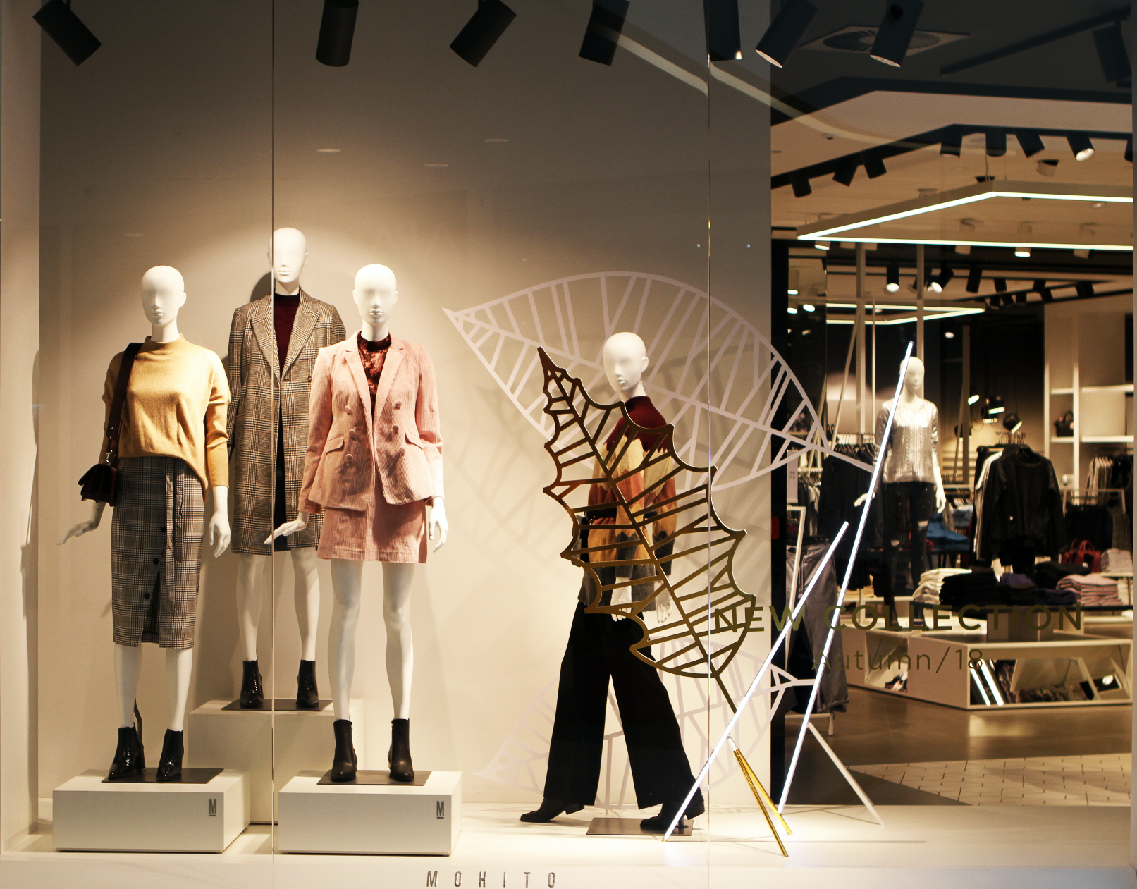 Autumn window display designed for Mohito. A modern and minimalistic interpretation of the leaf motif.