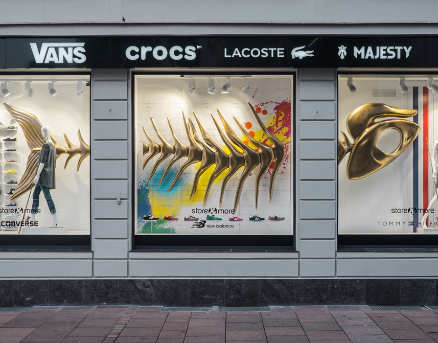 Window display design compliant with the client's brief. Production Implementation.